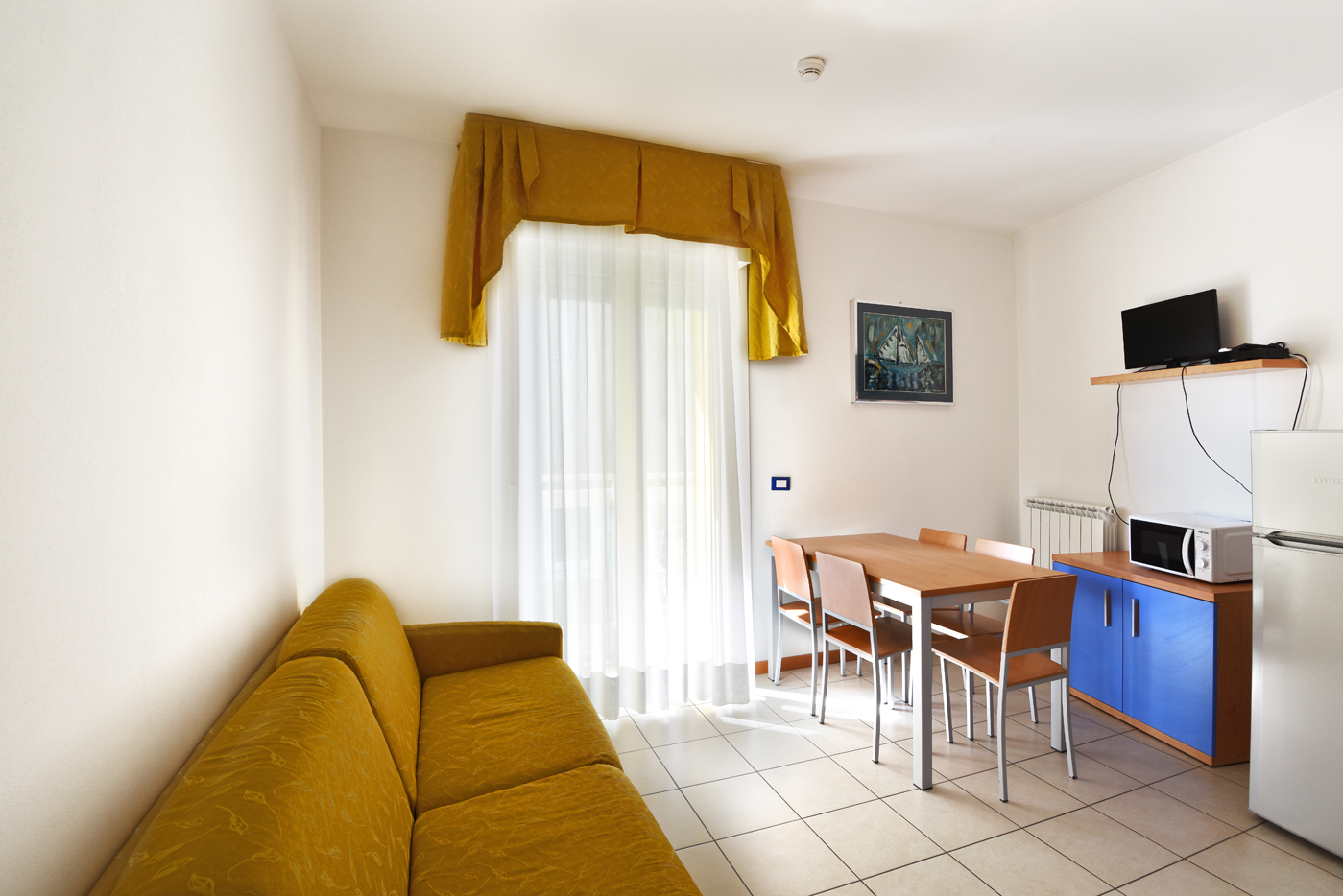 • Zona Giorno: Un soggiorno luminoso dotato di un divano letto singolo, ideale per i ragazzi o gli ospiti aggiuntivi.