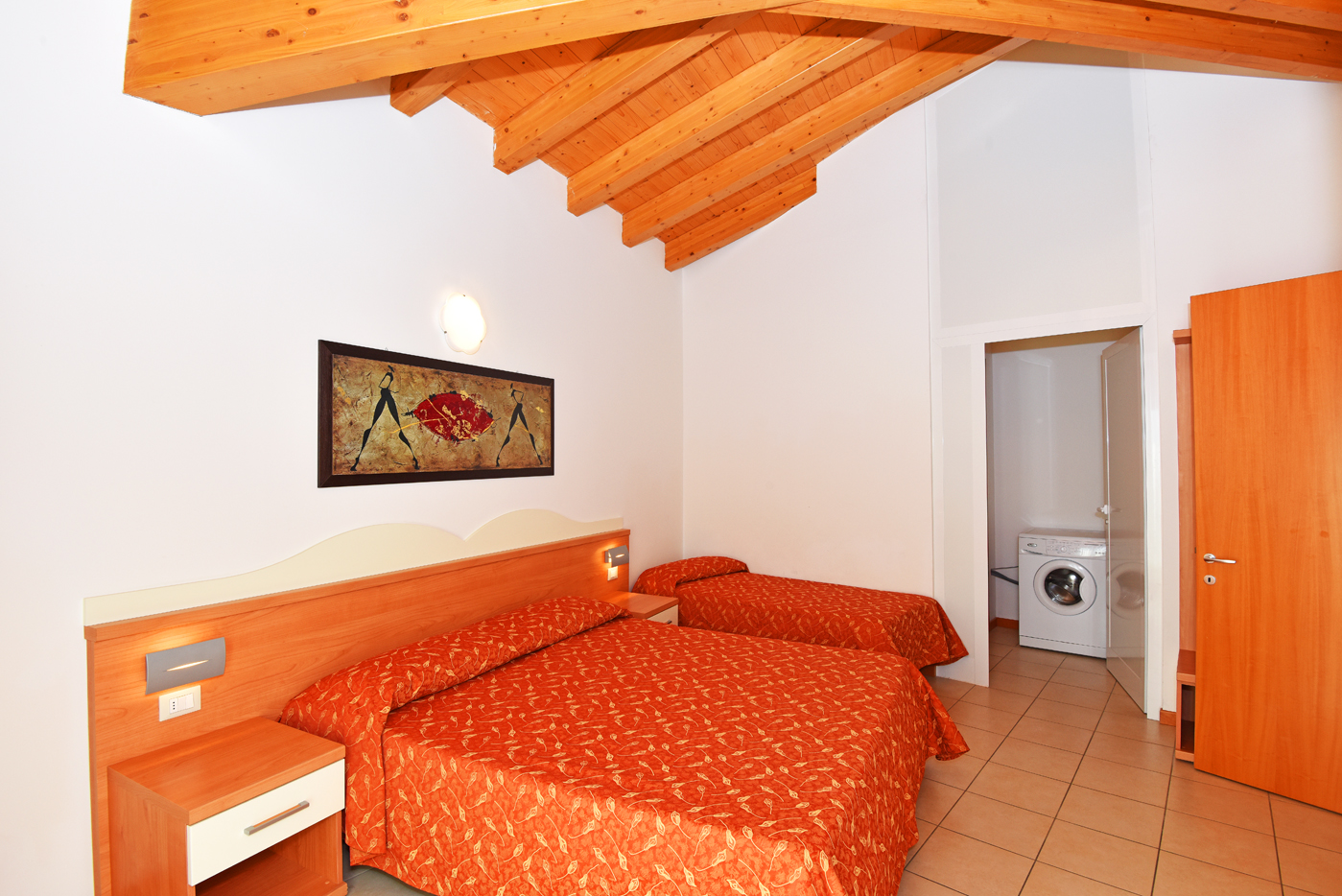 • Camera : Una zona notte spaziosa, letto matrimoniale e letto singolo, soffitti alti con travi a vista e lo spazio necessario per muoversi in totale libertà.